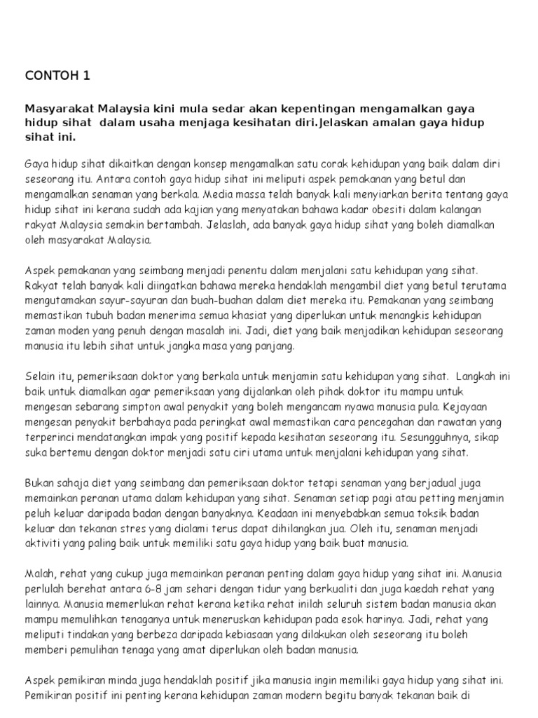Koleksi contoh karangan spm bahasa melayu sijil pelajaran malaysia berikut adalah contoh contoh karangan mengikut tema yang selalu digunakan sebagai tajuk soalan karangan bahasa melayu. Jelaskan Kepentingan Menjaga Kesihatan Diri. Bahagian b 1 via bumigemilang.