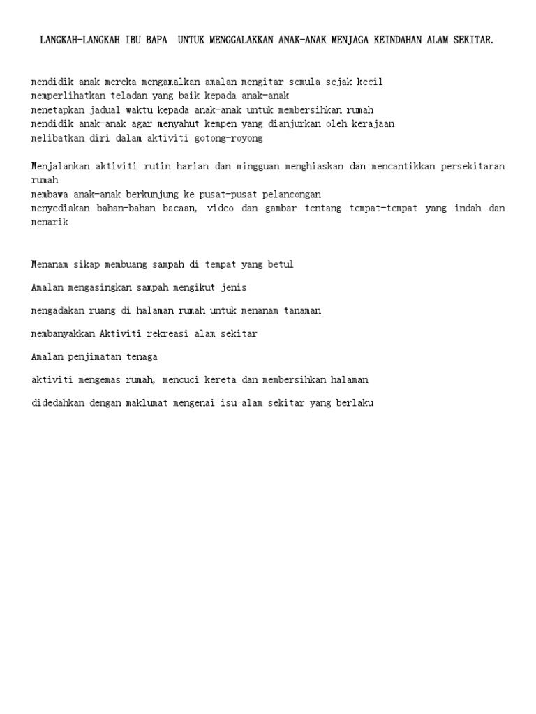 Peranan Ibu Bapa Untuk Menggalakkan Anak Anak Menjaga Keindahan Alam Sekitar Print Pdf