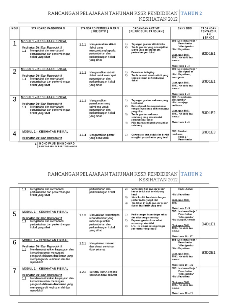 Rancangan Tahunan Pendidikan Kesihatan Tahun 2 Pdf